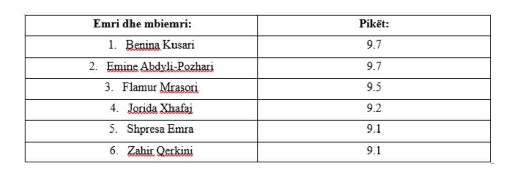 Pas përmbylljes së intervistave dhe procesit të poentimit, Komisioni vendosi që Kuvendit t’ia dërgojë listën e gjashtë kandidatëve të suksesshëm, të cilët do të jenë në garë për dy vendet vakante në Gjykatën Kushtetuese, raportoi “Betimi për Drejtësi”.